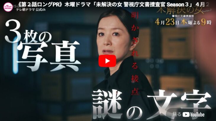 『未解決の女 警視庁文書捜査官 Season3』 2話 予告動画とあらすじ 「鈴木京香」の人気商品を […]
