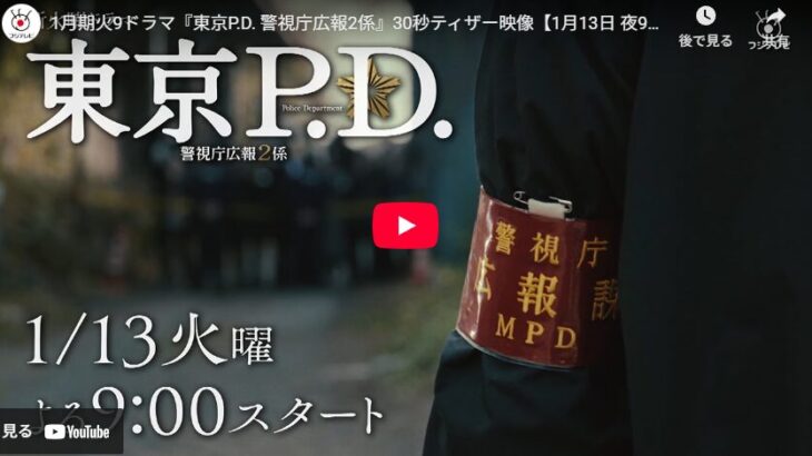東京P.D. 警視庁広報2係 『東京P.D. 警視庁広報2係』 1話 予告動画とあらすじ 『東京P.D. 警視庁広報2係』 1話 予告動画とあらすじ 「福士蒼汰」の人気商品をレビュー件数順に […] 続きを読む